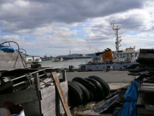 呉市川原石港から呉湾の向こう側に日新製鋼所があります。その夜景はまるでターナーのよう。今朝も新しい鉄が産声を上げるのでした。