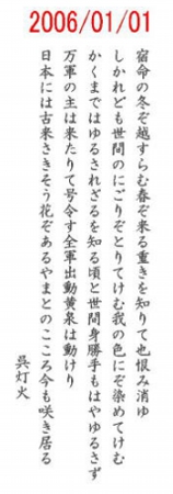 - もののふのやさしきこころふれしかばこの道たれとともに歩まむ 呉灯火