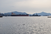 【2008/10/25】写真を撮りに行こうと思って出かけました。いつもの海に出てみると、驚きました。まさにタンカー出航の一瞬でした。是だと思ってシャッターを切っていると、アオサギが鳴くのでした。ギャーッ、ギャーッ、ギャーッ。小学校六年の時だったでしょうか、校舎(港町小学校)の窓越しに当時世界一のタンカー、グロブティック・トウキョウが出航する姿を見たのを想い出しました。まるで半島が動き始めたかのようでした。